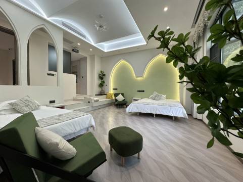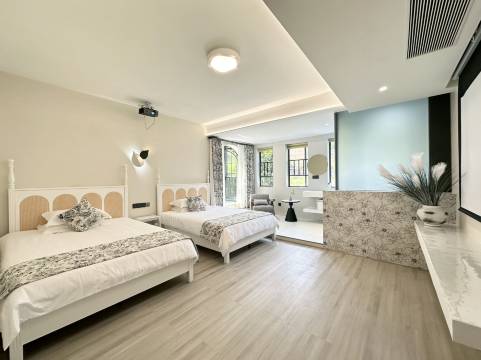 房型设施齐全,满足多样需求: 民宿拥有2栋别墅——“森林拾光”和“艺术花园”,以及2套复式楼套房,满足不同客人的需求。其中,“森林拾光”独栋别墅配备电梯,提供尊贵舒适的入住体验。每间客房均设有阳台或露台,空间宽敞舒适,让您尽情享受自然风光。酒店还配备中西餐空间、茶空间、娱乐空间、洗衣空间及冰箱等设施,为您打造便捷舒适的度假生活。