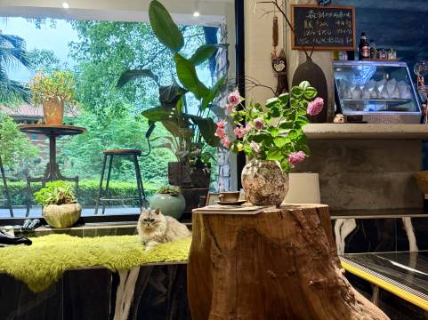 店主会做咖啡,还擅长琴棋书画,店里还摆着店主自己画的小扇子🪭。民宿里还有两只猫猫🐱,超级超级乖,非常好玩。