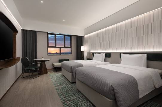 服务真的要重点夸!工作人员就特别热情,办理入住效率超高,还耐心给我讲了附近的美食和交通,住的时候发现淋浴头有点小问题,打了个电话,维修师傅几分钟就到了,处理完还特意问了句“现在能用吗?有问题再随时找我”,态度特别好。每天打扫房间的阿姨也很细心,会把我的护肤品摆得整整齐齐,连我随手放在沙发上的外套都叠得平平整整,细节里全是用心,住得特别有归属感。设施方面也完全没话说!房间干净得没话说,床品柔软又透气,睡一晚浑身都放松;卫生间干湿分离做得很到位,热水来得快,水温也稳定,洗漱台空间够大,护肤品再多也能摆开。房间里的空调静音效果超好,晚上睡觉完全没噪音,隔音也很棒,外面的声音基本听不到。公共区域的电梯速度快,走廊光线充足,连大堂的休息区都很舒服,偶尔坐下来歇脚特别惬意。
