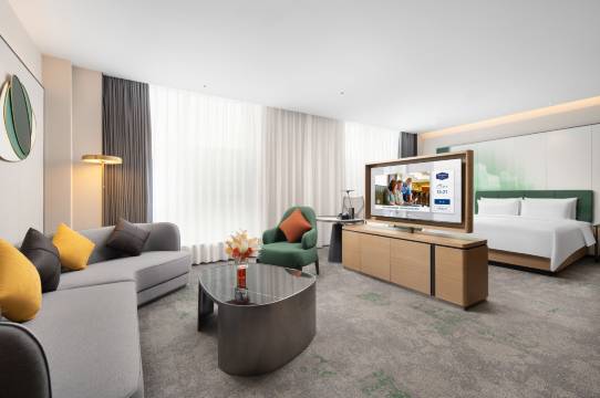 晋中榆次安宁街希尔顿欢朋酒店坐落于晋中市榆次区安宁街与定阳路交叉口,毗邻榆次老城风景区,距离太原南站仅20分钟车程,武宿国际机场仅19分钟车程,周边商圈繁华、地处交通枢纽出行十分便利。设计风格时尚简约,强调以人为本的设计理念,将功能实用性与形式美观性完美结合。环境优雅,追求国际化品味与风格,关注服务体验,让所有顾客在旅途中感受到亲朋的温暖,温馨舒适的客房、功能丰富的会议室、乐动健身房以及口味纯正的健康格调餐厅……贴心的服务只为更懂你,希尔顿欢朋,让你的每一次入住都倍感舒适,快乐从此简单!