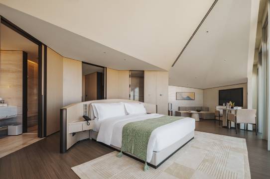 用品规格更是超出预期:洗漱全套帕尔玛系列,质感直接拉满;连带娃的细节都想到骨子里,小朋友的马桶座圈和脚凳居然是Luna Story(我家娃小时候就用这个牌子的围栏,瞬间觉得“太懂家长了”);房间里有超大浴缸,品牌瓶装水无限续,Mini吧能随便喝,连牙刷都是一次性电动的,这些小细节真的精致到极致!