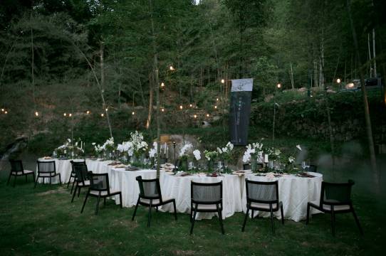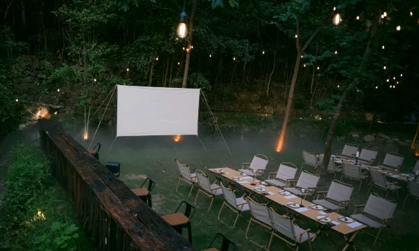 民宿设有独栋双层观景餐厅「山筵」,室内可同时容纳100人同时用餐,户外可同时容纳100人用餐。设有手创活动空间「青岚」,林间木屋茶室「半盏」,果园休闲木屋「见山」,3个林间观景木平台,1个半开放美学茶寮,7个户外阶梯式活动草坪,1个2000平超大活动草坪,1个体验式采摘果园。