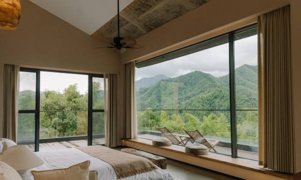 非常满意的一次度假体验;单独拥有一个山头的民宿,房间都非常具有现代设计,楼栋之间的布局也非常有讲究,不会觉得逼仄,风景也很棒;虽然天公不作美下着大雨,但坐在床上打开落地窗帘看窗外云山雾绕的风景也有别样的体验,老婆孩子也玩的很开心很满意,能看出来工作人员都有服务热情和诚意,临走前还赠送了当地的特产干货,有时间了还会再来