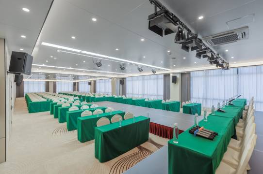 本店位于清远市清城清新交界处,毗邻于笔架山麓,二渡河滨,感受山之巍峨,水之清秀,沉寂中增加些许智慧,和风里更添几道仁光。靠近玄真古洞,步行十分钟即可享受漂流逸趣,水上乐园亲子互动童心情真。酒店客房可瞭望黄腾峡玻璃桥,感受网球拍霓虹灯之炫色霞光。驱车前往游览古龙峡风景,仅需十五分钟,犹觉便利之舒畅。酒店集智能客房,会议室,健身房,别墅会所团建,KTV,茶室,文化研习所为一体,让人旅途中消去几分疲乏,娴静而又雅致,舒适透着墨香。瑞雲欢朋宜室宜家,服务热忱周到,让人感受满面春风,是旅行入住的不二之选。