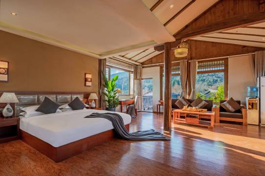 非常好的房间,房间内部就可以看到日照金山,房间景观很好。老板和服务人员也都特别热心,帮忙搬运行李箱上下楼,并主动添加微信让我们有事都可以找他。卫生也不错。地理位置特别好,就在束河古镇北门口,出门打车特方便,去白沙古镇和玉龙雪山景区也特方便。就是房间内的空调比较难打热,可能是由于房间大的关系,但是不冷。