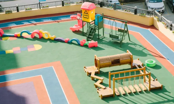 值得一提的是这里的一个大露台,孩子们在玩滑梯的同时,你可以在露台上安静地坐着,或者可以和家人聊聊天、刷刷微信。晚上,还可以去酒吧。