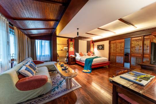 非常好的入住体验!院子特别宽敞,绿植环绕环境清幽。客房充满古韵,木质家具和雕花门窗都很有味道。老板人很热情,居然主动给我们免费升级了套房,面积大了不少还带智能马桶,真是意外惊喜!