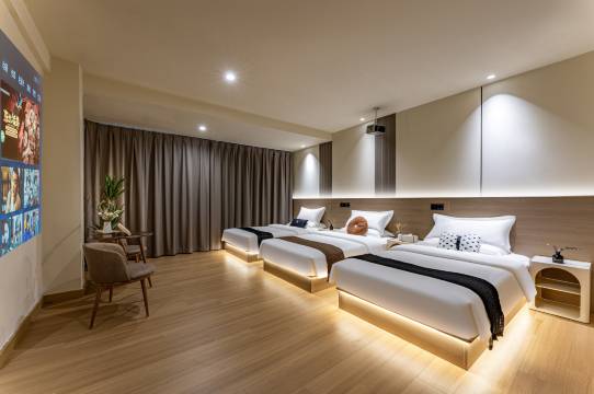 该酒店给我留下了很深的印象,酒店环境极好卫生方面做得很到位,其次房间是暖色调主题给人一种舒适的感觉,其配备很完善,吹风筒智能音箱,投影仪等设备很齐全,充分满足住户的需求,而且服务很周到,需求老板都会尽力满足,而且价格很实惠,推荐大家来体验一下,老板还是开宝马接送非常棒!下次有机会肯定还会在来。