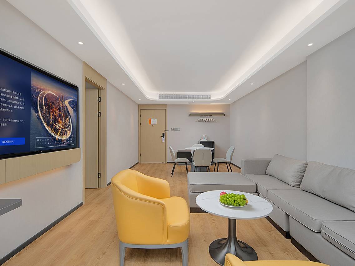 停车方便,且有充电桩。周边很热闹,距西湖公园几百米,沿途地方小吃丰富,味美价廉。酒店工作人员服务热情,房间空间很大,有办公区、茶吧区,很别致,影音效果好,可以投屏。