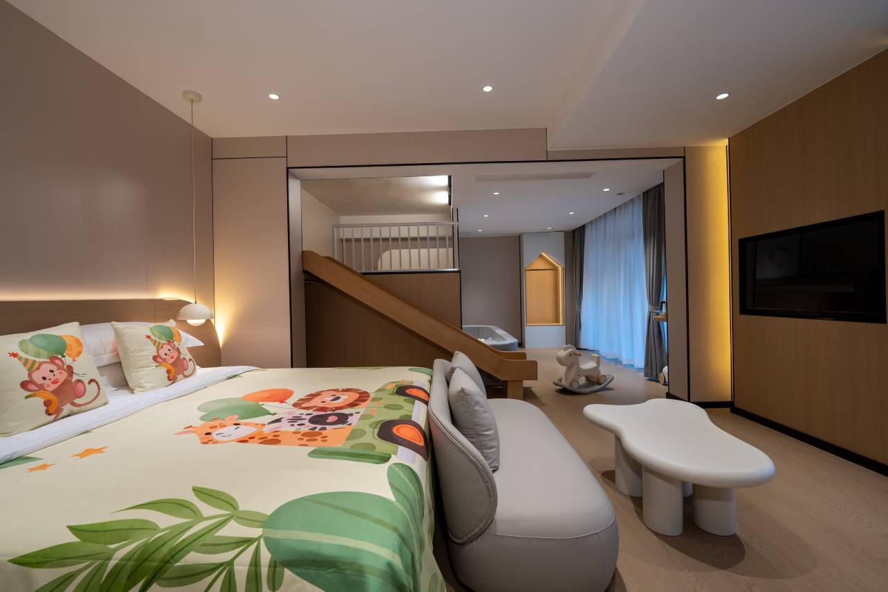 正好小朋友生日,想去海边玩,又想住可爱一点的房间,就选择这里。那天晚上她都不舍得睡觉💤知道明天就走了。一直在房间转来转去。时间充裕的建议多住几天。白天太晒了可以在房间玩,晚上去沙滩。拍照打卡满分。不足就是,去最近的沙滩要三公里左右,导航有时导到烂路出门,一路都是大货车多。但从另一条回来路面比较好。虽然是新的装修,但是地板卫生情况不好哦,我重新用湿巾再擦一边。落灰严重。希望酒店管理方面要加强点。前台小哥哥服务很好,要求的东西都帮我一一落实,点赞一个。下次过生日再去体验不同的主题房!真是解放双手的地方。如果这个酒店再有游泳池的话就更加完美了!