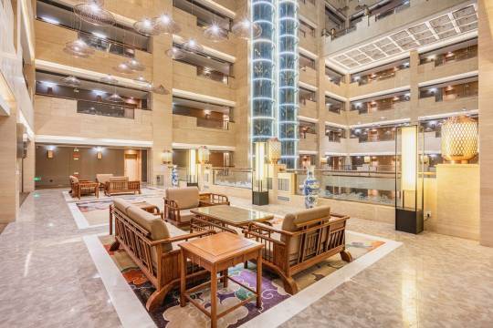一进大堂里感觉到风格十分端庄,酒店前台还给升级了房型,房间视野超棒,窗正对秦岭山脉,晚上看夜景美不胜收。隔音效果也很好,虽然不在市中心,但是有直去机场的大巴很方便,出酒店后附近也有盒马电影院Ktv,十分方便!!
