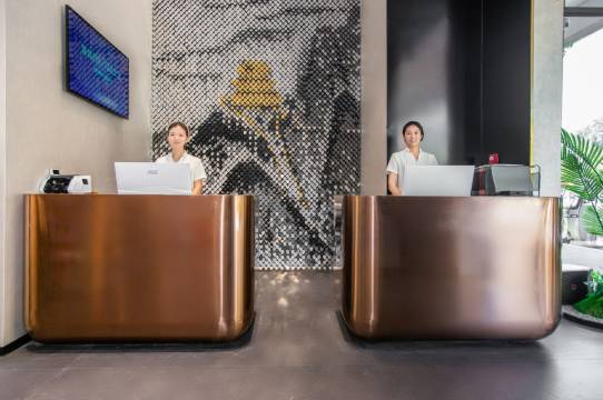 酒店集住宿、娱乐、购物为一体的综合性酒店,新中式装修,简约典雅,装修炯异的豪华客房多套(间),酒店秉承“宾客至上,服务至上”的理念,为您在旅途中营造一个理想的休憩之地。