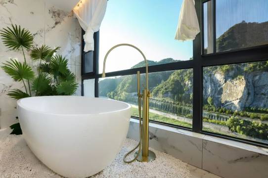 【超赞体验!必须五星推荐!】房间配有2米超大床,躺下瞬间被柔软包裹,一夜酣眠到天亮!全景大落地窗简直是视觉享受,清晨推开窗,满目青山叠翠与波光粼粼的河水撞进眼帘,仿佛住在山水画里~更惊喜的是酒店提供免费停车场,自驾游省心又省钱!推窗听风吟鸟鸣,枕着潺潺流水声入眠,这种依山傍水的入住体验太棒了!强烈推荐!!!