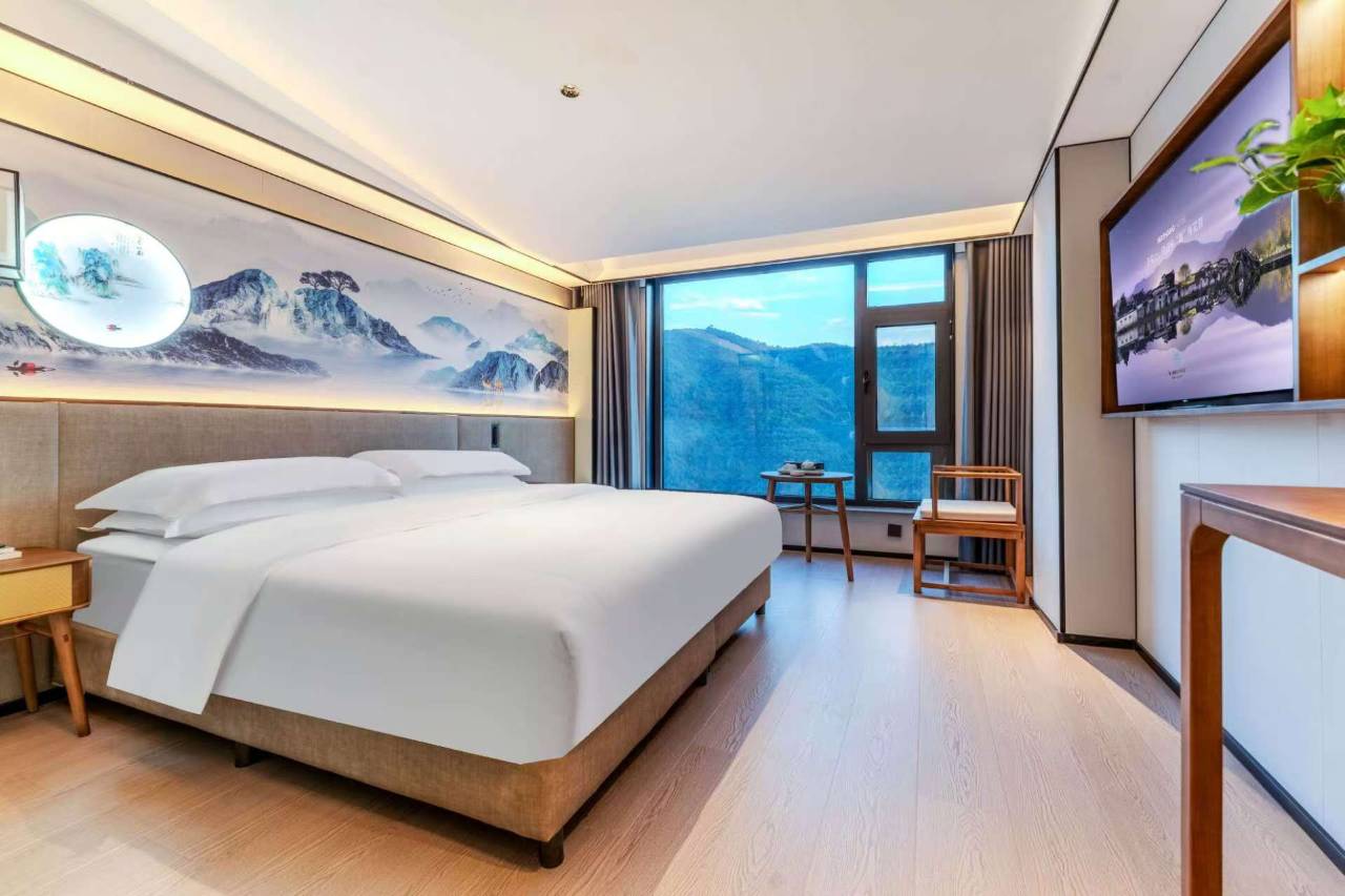 这次入住体验挺好的,预订的大床房非常舒服。房间温馨明亮,床品柔软亲肤,床垫软硬适中,一觉睡到天亮,科技感挺高,里面装备了小度的人工智能。卫生间干湿分离,细节之处尽显用心。从前台到保洁,服务人员态度热情又贴心。下次来这边玩还住这里。