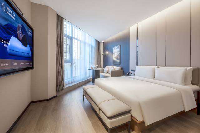 因为不想住景区选择市里这家亚朵酒店,大厅明亮宽敞,前台服务人员热情快速办理入住,房间也是一贯的设计简约实用,布草舒适,早餐时一句不经意的互动,让师傅把油条安排了,很感动~免费停车场方便够用,性价比很高的酒店。