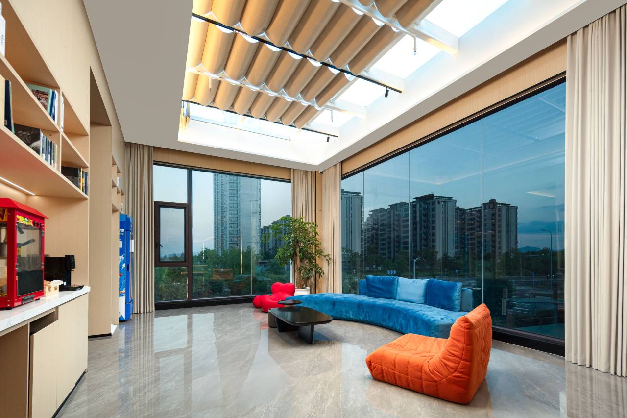 酒店前台服务态度很好,客厅还有沙发茶饮售卖机里面有饮料啊,咖啡自助的咖啡爆米花都先榨的酒店提供茶饮自助服务机器人送外卖,直接送到房间门口方便有安全这里去消防站考试也很方便的,过年期间楼下的夜宵啊,都已经开始摆了,真的很方便了,也不用出去开车