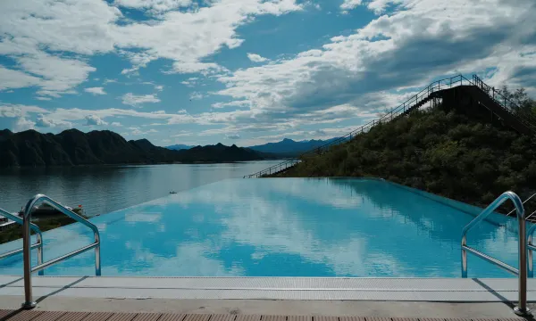 星空揽月 近水楼台先得月 到码头只需走两步,非常方便 !这里给人一种惬意放松的度假氛围。泳池、山水背景增添了开阔感与品质感,整体氛围闲适又优雅,拍照📷打卡给人一种高端度假场所的感觉,在这里更能凸显品质与格调。