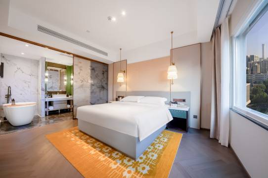房间面积挺大的,布局合理,设施智能化,房间隔音做得不错,住起来很舒服。新开的酒店设备都很新,卫生也特别棒👍🏻紧邻三里屯,周边逛街购物、吃吃喝喝太方便了,酒店有停车场,停车也不用发愁!前台的工作人员热情周到,特别的nice~下次还会选择这家酒店!