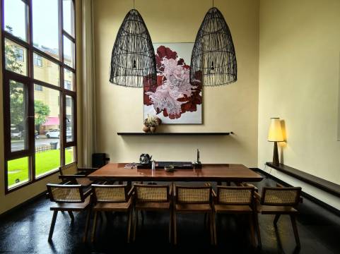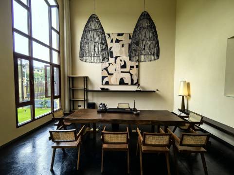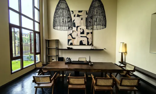 盈江允燕小墅是德宏州的高端民宿型酒店,有别墅和客房。地理位置背靠盈江县允燕山,面临美丽的大盈江。由业内著名的室内设计公司Kentdesign联手专业装修团队打造。设计旨在给下榻客人感受到彻底的放松。酒店整体设计基调以深色为主,灯光放弃明亮刺眼的高色温,让旅途的贵客从视觉感官就进入松弛的感觉。别墅以及酒店大堂和餐厅采用不同风格的软装和手绘油画,让客人沉浸在艺术的氛围当中。13套别墅一楼大厅均给客人提供了专业的饮茶器皿和茶台,客人可以自主泡茶以及制作咖啡等饮品,充分发挥客人自主性,让客人有宾至如归的入住体验。