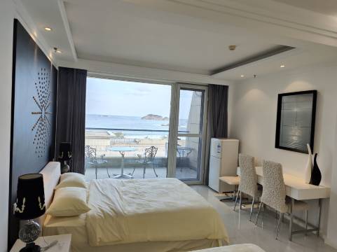 蛮干净的,这个大姐也很热情,以为离海有点距离,其实下负二就直达海边马路,过马路就是海了。站在阳台拍的照片,天很蓝,海水也还算干净,