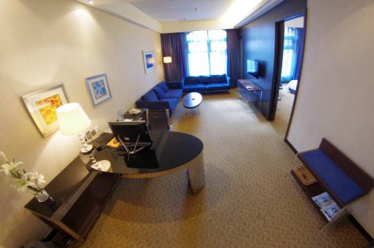 一间不错的酒店,房间设施有点旧,但干干净净的,房间宽敞,该配备的用品都配备齐全了,服务员也细心,帮我们补充多了一些纯净水和茶叶,停车很方便,地理位置优越,万达广场就在附近。