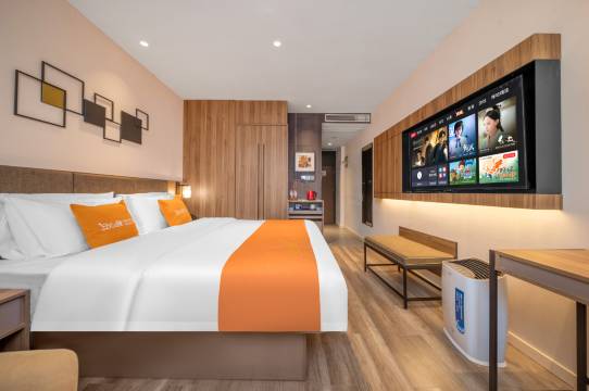 交通很便利,就在地铁站边上。附近是步行街,很多好吃的,周围都是惬意的居民,打牌下棋跳舞打羽毛球,太chill了。酒店环境卫生很好,有洗衣房,前台小姐姐和保洁阿姨服务都很热情,吃东西、打车和坐地铁都方便,期待再次入住。