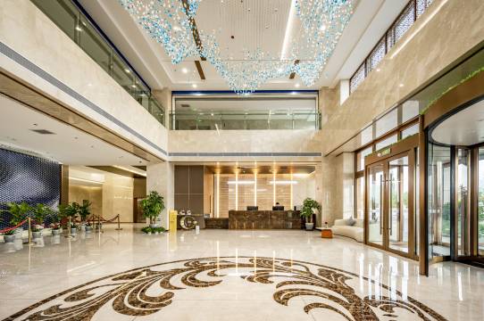 第一次住这家酒店,感觉超出预期,大堂挺大的 房间采光很好 没有异味 很干净 离火车站挺近的而且周边很安静 前台服务态度很好,很热情 楼下停车场超级大 性价比可以 还有就是房间里配6瓶水超大气 ,