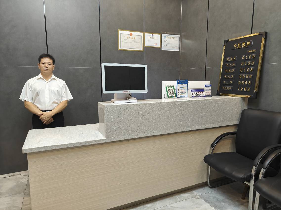 老板很热情,楼下就有停车位,挺方便的,附近不远全是吃的;一百多大床房也送的两瓶水,不够还可以跟前台要,好评!洗浴用品也是一次性的,干净!跟我家用的同款智能电视,反应快,可以看云视听!空调也是新的,制冷快!下次出差,还选他家!