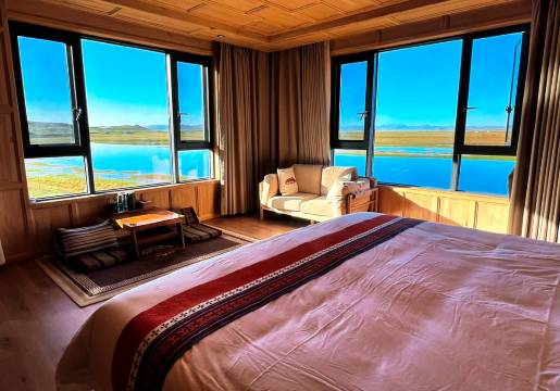 Perfect Location, Unforgettable *******-Style Experience! This homestay boasts a prime location on the stunning shores of the Yellow River. An even more delightful surprise is a beautiful lake revered as sacred by the locals right next door. Step outside or gaze from your window to enjoy breathtaking panoramic views of the serene lake and vast grasslands – truly spectacular and soul-refreshing.