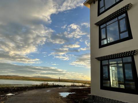 民宿位于湖边,很新,里面全部是杉木结构,藏式风格,房间大,卫生状况良好,环境优美,推窗见湖,躺在床上直接可看日落日出,舒服极了。可惜来的那天天阴。店家很友善,免费提供旅拍的衣服,满足各种拍拍拍,餐食也不错。湖边还发现一只可爱的土拔鼠,远处牛羊成群,一幅美丽草原画卷。真心推荐。