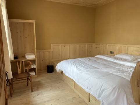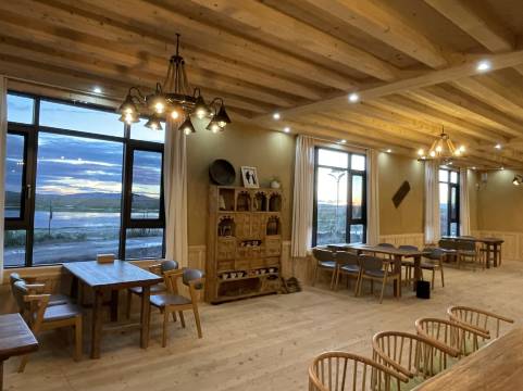 若尔盖余舍民宿扎根于若尔盖大草原自然区腹地,推窗即见草原全貌。清晨拉开窗帘,成群牛羊在茵茵绿草上缓缓移动,土拨鼠从洞穴里探头探脑,圆滚滚的身子带着几分俏皮。近在咫尺的湖泊如镜面般倒映着天光,岸边常有黑颈鹤驻足,舒展翅膀时尽显优雅,偶有水鸟掠过水面,激起圈圈涟漪。民宿以天然原木打造,从地板到家具都散发着淡淡木香,无化学异味,健康又安心。墙角的弧度打磨得温润,窗边的木桌恰好能放下茶杯与相机,处处细节都透着用心。工作人员的热情像草原的阳光般和煦,会笑着指给你看土拨鼠的洞穴,提醒你傍晚湖面的霞光极美。在这里,既能枕着草原的风声入眠,又能被贴心的服务包裹,自在又惬意。