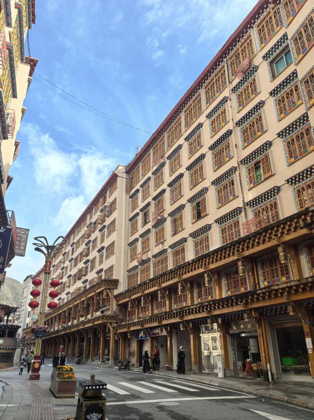 从色达进藏的路上,在德格县城住一晚,小县城还是蛮热闹的,小小的路,交汇车都有点难。商务酒店就在主干道上,边上是她家的停车位,也是小小的,但是晚上头尾相接停的满满的。酒店前台接待的小妹妹叫俄热拉姆,看上去年纪不大,但是办事周到,也很负责,能尽量满足客人需求,不怕麻烦,真的很淳朴善良。房间给了我们同层,卫生不错,搞得挺干净,卫生间干湿分离。过度一晚已经不错了。德格印经院就在离酒店不到1公里的地方。