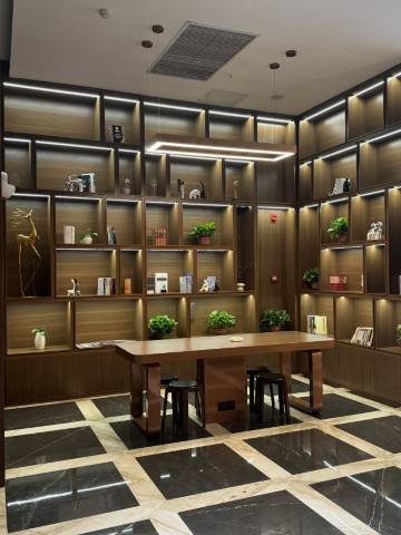 智能客控系统可语音调节灯光、窗帘,电视、空调,茶韵诗香 。干湿分离卫浴配洗护用品香香滴,花洒水温合适,出水均匀,细节处尽显用心 。空间设计简约实用,下次就选他家不踩雷~~