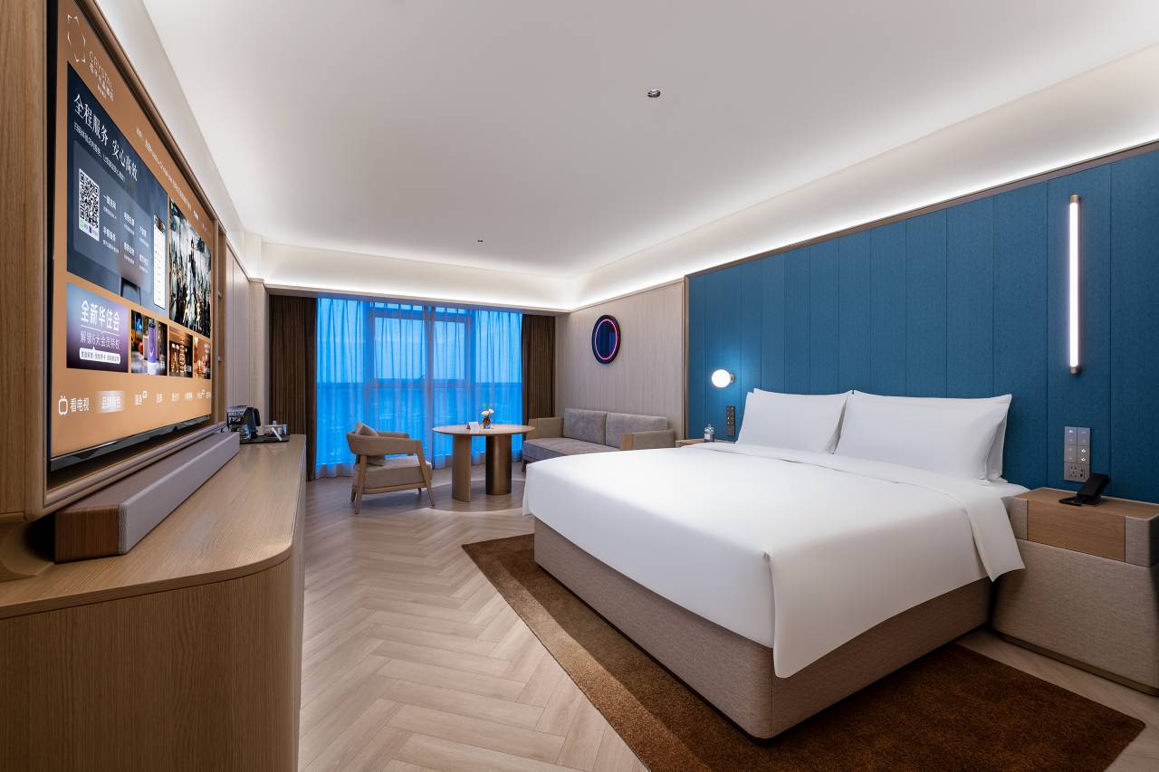 空间很大,床很舒适,有软枕头和硬枕头,房间里有水晶香薰,电视可以投屏,有智能音箱,窗帘马桶都是智能的,睡袍很舒服,卫生打扫的很好,咖啡不错,mini bar 里有可乐雪碧和冰水,总体上很舒适,早餐比较丰富,馄炖很好吃,过生日前台还送了伴手礼和生日贺卡和水果