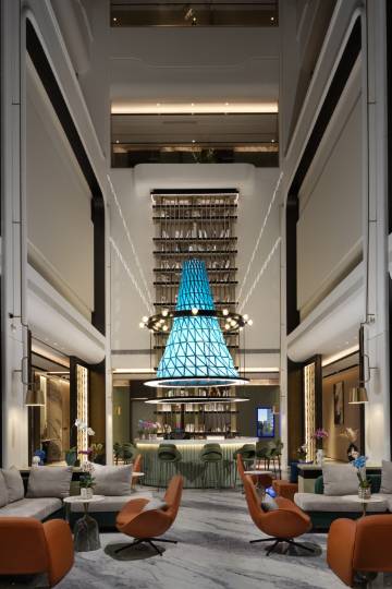 酒店处于未来科技城高端科技产业和多功能商务休闲综合体的核心地带,位于杭州市余杭区五常街道余杭塘路未来星宸园区6幢,距离永福地铁站(5号线)步行1分钟,距离杭州师范大学步行8分钟:距离亲橙里购物中心车程约5分钟,距离杭州西站车程约15 分钟地理位置优越。周边著名景点阿里巴巴总部、梦想小镇、西溪科技园区、西溪湿地国家公园、良渚古城遗址等。酒店以产品为核心,集结行业头部生态伙伴,拥有属于自己的标准化及设计、建造一体的产品线,以技术赋能服务。为客人打造具有生活精致艺术,涵盖商务、休闲、度假的豪华服务型酒店。为您提供轻奢智能化网红打卡胜地。不论是商务或是休闲旅行,都能融于自然氛围中,享受轻松愉悦的入住体验。酒店拥有智能化客房,多功能会议室,健身房,洗衣房,豪华客房、园景客房、行政商务套房等多种房型选择,每间客房均配备智能小度:戴森吹风机,咖啡机,星巴克咖啡胶囊,东方宝石洗浴用品,缸双洗手台盆,房间设计现代优雅,设施配备齐全,让您的出行更加便捷舒适,我们比您更加在意您的舒适体验!