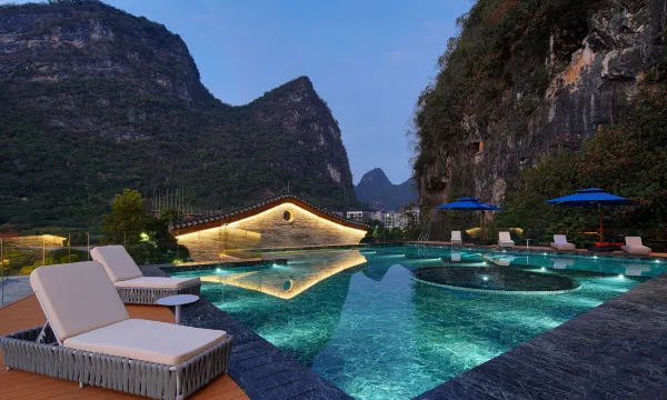 全球旅游巨头途易(TUI)旗下高端酒店品牌TUI BLUE,重磅落笔中国山水,以德国精工美学对话阳朔喀斯特秘境。酒店以“峰林为门、光影为序”——大堂穹顶垂落壮锦光纤艺术,地面流淌漓江渔火微光,溶洞剧场暗藏地质史诗,每一处细节皆在重构中国山水的国际表达。 多间全景客房(52-115㎡)以侘寂东方为魂,奶油原木与黑石肌理碰撞出静谧张力。推窗即入水墨长卷:或独揽峰林云起,或对望千古烟火,或静听远山呼唤,或私享静谧星空......在晨雾中看竹林清风摇曳,在晚霞中听刘三姐山歌悠扬。 山水不止于观,更在于征服与沉浸—— ▸ 攀岩老铁山绝壁,触摸亿年地质纹路 ▸ 探秘荧光洞穴,邂逅《阿凡达》式幻境 ▸ 田园农耕、和里说脱口秀、中国书画、溶洞下午茶… 从野性探险到诗意栖居,这里的故事,等你来书写!