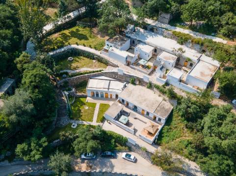 民宿坐落于半山腰,被郁郁葱葱的林木环绕,自然气息扑面而来。庭院设计古朴雅致,拍照也很出片。
