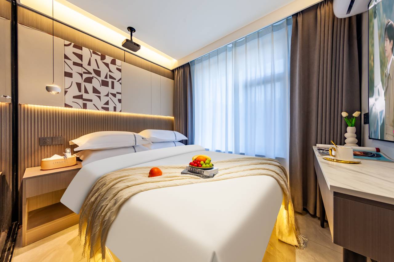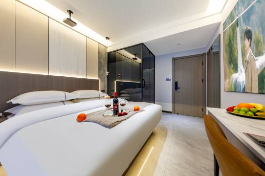 房间非常干净,设施也齐全,老板娘也热情,特别是他们家的投影非常清晰,周边出行也便利,吃饭购物也方便,强烈推荐