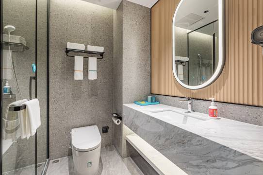 房间大气,大理石风格的洗浴台,非常喜欢,停车场对比了好几家酒店,这家酒店的最大,早餐品质不错,吃的也好,房间卫生阿姨们打扫的非常清爽,晚上不小心把床单打湿了,联系前台,他们的帅哥店长亲自帮忙换的,服务态度非常好。