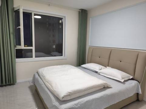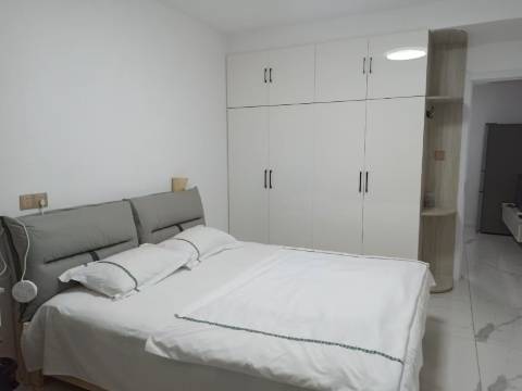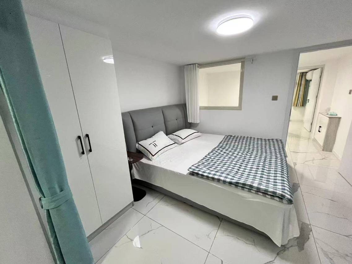 一室一厅,独立卫浴,还有厨房,卧室采光比较好,牙刷多,卫生纸也多,比较适合长住,还有空调、阳台、洗衣机