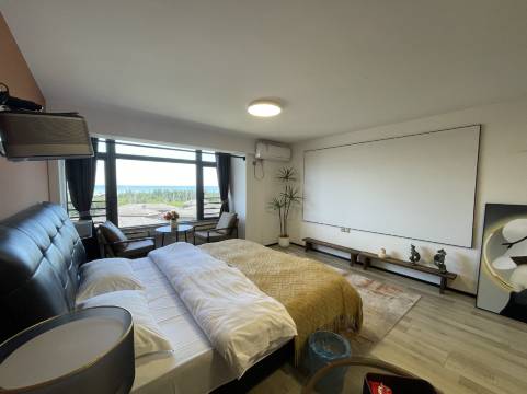 房间宽敞明亮,环境整洁,大屏投影非常nice,临近海边,可以看海。