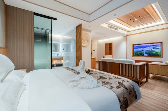 第二天我们早上八点多就出发找美食了,路上我发了短信和前台说不用帮我们收拾房间,这个时候前台才和我说套房被定了,帮我们换了之前定的房型,我说我们已经出来在路上了且刚才我们出酒店的时候你们也是看着的怎么又不先说?这样我们还能直接上去收拾,后又询问能否补差价不换,毕竟我们已经出来了,前台表示:套房被定,原房型还没有打扫好的,让我可以先去玩中午再回来收拾更换就好。但是我们是租车自驾,全天都不需要回来;我这个时候已经挺气了,也怕真耽误酒店套房其他人入住,就让我老公直接掉头回酒店想先收拾好再出来玩,结果我们回到一半的时候前台又发信息说和领导再沟通下,又说可以不用更换了!!我这时候已经不想搭理前台了,立马回去收拾行李放前台,真的绝绝子无语!!前台神操作真的容易很让人出去旅游的好心情都没有了,我们出去旅游在酒店呆在时间不多早出晚归的,只要住的卫生干净舒适就好,升级套房是因为你们酒店没有热水导致,不是我们要占酒店便宜。