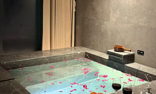 私汤温泉还贴心准备了玫瑰花瓣~