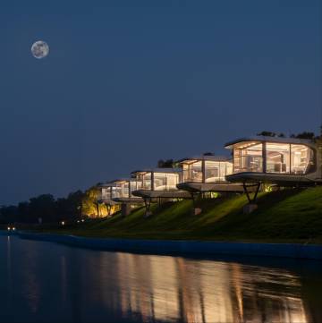 半山四季温泉酒店隐于洛阳市洛龙区王山村口南山花卉场园区附近,以得天独厚的地理优势构建便捷出行网络。 酒店距飞机场 30分钟车程、火车站 20 分钟、高铁站仅 10 分钟,立体交通勾勒出都市与自然的黄金通勤圈。 毗邻景点如珍珠散落:举步即达南山花卉市场与南山市集,驾车 4 分钟邂逅牡丹阁与野孩子乐园,2 分钟探秘王山寨抗日遗址,18分钟直达世界文化遗产龙门石窟,让人文与自然的巡礼皆在从容步履间。 酒店层叠于翠岭之间,60亩山林领地中,3 万平米景观画卷由忱意空间设计研究室 创始人、设计总监陈程意执笔 —— 这位设计师实力卓著,2020 年斩获多项行业重磅荣誉:法国双面神全球设计师TOP100、上海国际设计周 - 新锐中国设计奖、第四届中国室内设计新势力榜华中区 TOP10,以及龍承奖 空间陈设搭配设计奖 银奖。其设计的黑白色系构筑的几何建筑群如“云端盒子”,线条极简却张力十足,与无边泳池的镜面水色、草坪的柔绿肌理相映成趣。当温泉雾气漫过野奢餐厅的落地窗,当健身区的光影掠过亲子乐园的欢笑,现代极简美学与传统汤泉文化在此完成诗意共振。 多客房演绎两种旅居哲学:18 套庭院私汤房以 “一户一景一私汤” 为核,推门即见草木扶疏的独立院落,私汤温泉在星空下氤氲,金可儿床垫与汉斯格雅卫浴构筑寝居体系,法国欧珑洗浴、戴森电器与 TOTO 智能马桶加持细节体验;日间客房大厅化作“半山会客厅”,手作餐点与现磨咖啡漫溢暖意,夜幕降临时变身“云麓酒吧”,爵士乐与精酿啤酒编织山间微醺时光。6间智能太空舱客房由宿联品牌匠心打造,180度落地玻璃框住洛都灯火,语音控制天窗邀星河入室,让“枕星而眠”的浪漫成为触手可及的日常。 建筑与自然在此达成精妙和弦:阳光穿透玻璃幕墙,山林绿意漫入室内,草坪如天然地毯延伸至视野尽头。居于此,可揽千山入怀,可沐温泉涤心,在都市近郊的“世外桃源”里,重拾“云野之頌,清欢悠在”的生活本味,这不仅是一次住宿体验,更是对身心的深度疗愈,让每个日子都沉淀为值得回味的度假诗篇。