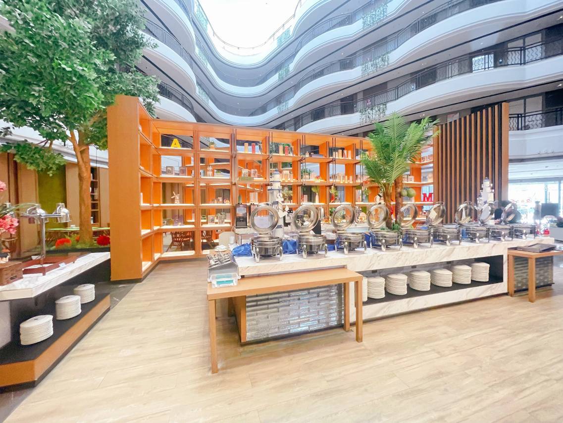 一家出游,订了两间当,早饭是和旁边的希尔顿酒店一起,体验感很好。楼下有舞台表演,推荐五谷芳,潮灶,很好吃