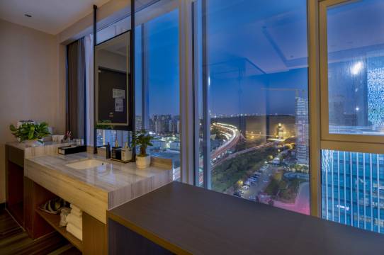 去阿克苏收苹果路过,酒店去哪很方便,房间很大很干净,大落地窗,经理给免费升级的房间,前台很友好很热情