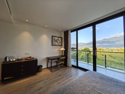 面向远山,草海就在前面100米左右,散步很舒服。整栋民宿很有设计感。后面还有老板的银器工坊,有兴趣可以去看看银器制作过程。