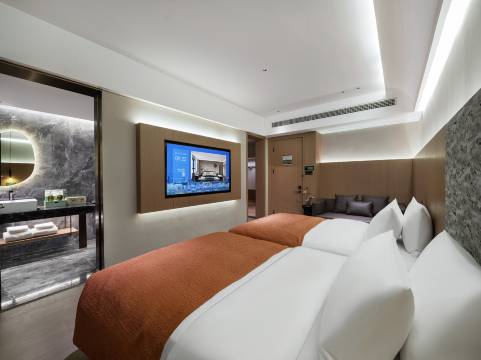 酒店-让心栖息,邂逅美好 卸下一路风尘,时光正好。酒店秉承着时刻自省并不断超越的服务理念为每一位向往自在的旅客提供一个典雅、舒适的居住空间,让入住酒店成为一种享受,让每一位宾客实现悦己的生活态度。酒店一个融合现代美学与舒适体验的新地标。 酒店每一间房间内设施齐全,包括全屋智能语控、65寸智能液晶电视、智能机器人点餐送餐等服务,除了舒适的住宿环境,酒店更是以“宾客至上”为宗旨,提供行李寄存,叫醒服务,24小时热水服务,无线网络覆盖,精致可口的自助早餐等贴心服务,让您的每一次入住都倍感温馨与便捷。酒店不仅设有大堂吧、茶歇室、花台庭、行李房,还精心配备了齐全的生活服务,包括自助洗衣房、健身房、读书室、露台花园、餐厅、会议室和停车场等,另酒店提供火车站、高铁站和机场预约接站服务,酒店完善的配置和标准的服务满足您的各种住宿需求。