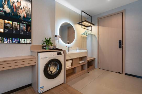 性价比非常高的一家酒店,装修比较新,单间有独立的洗衣机很方便,就是没有烘干功能,一次性马桶垫,这个很多连锁酒店都没有,有投影,很清晰,VIP随便看,点赞!