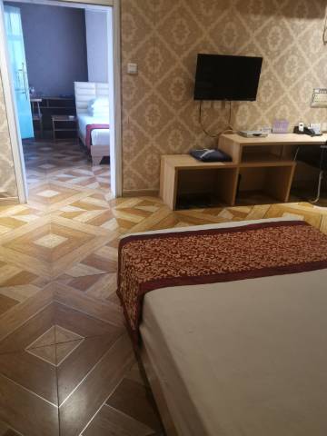 房间面积比较大,床很软,枕头稍微有点高,整体较好。比较急,没有到一楼洗浴。卫生间的洗浴没有了,但楼下有洗浴服务 可以去洗浴。